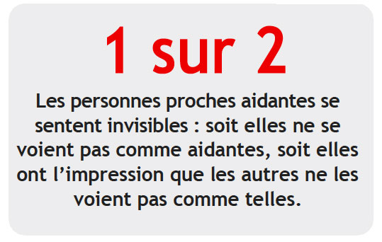 - Près de la moitié des personnes proches aidantes se sentent invisibles : soit elles ne se voient pas comme aidantes, soit elles ont l’impression que les autres ne les voient pas comme telles, le plus souvent parce qu’elles donnent « un simple coup de main » à un proche.